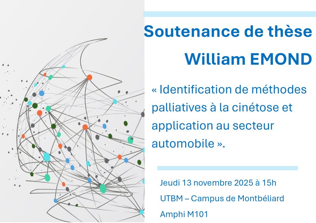 Identification de méthodes palliatives à la cinétose et application au secteur automobile. Identification of Mitigation Methods for Kinetosis in Automotive Transportation. Jeudi 13 novembre 2025 à 15h – UTBM – Campus […]