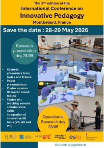L’édition 2026 est accueillie par l’UTBM et traitera donc des thématiques de la pédagogie innovante, de l’usage des nouveaux outils de collaboration en présentiel et distanciel (plateforme web, réalité augmentée et virtuelle, etc.) et des technologies émergentes telles que l’IA. Elle se déroulera pendant 2 jours sur le site de l’UTBM de Montbéliard. Cette année, une session spéciale sera organisée sur le thème de l’axe transversal du laboratoire ELLIADD « Médiation des savoirs et innovation durable ».